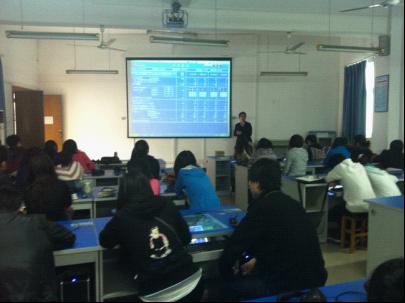 为积极备战2012年5月14日开始的全国第四届全国大学生企业管理决策模拟大赛(全国赛),4月15日,资源а√天堂中文中文在线邀请大赛组委会负责技术支持的袁军老师来到我校进行了现场培训。培训地点在我院会计实验室,从上午8:10开始,在三个多小时的时间内,袁军老师就大赛的基本情况,比赛的具体操作以及在比赛中如何合理、正确的制定、使用战略战术等进行了详细的讲解。我院共有包括工商管理、国际经济与贸易、旅游管理等专业的近80名参加此次大赛第一阶段――校内赛的学生参加了讲座和具体的实践操作。