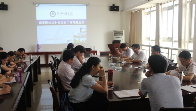 2015年7月1日下午3点至5点,我院在会议室召开了学院校友分会筹建工作中期检查会议。与会的有学校法规处鲍宏礼处长、资源а√天堂中文中文在线全部班子成员和校友分会筹建工作小组全体工作人员,会议由李月华书记主持。