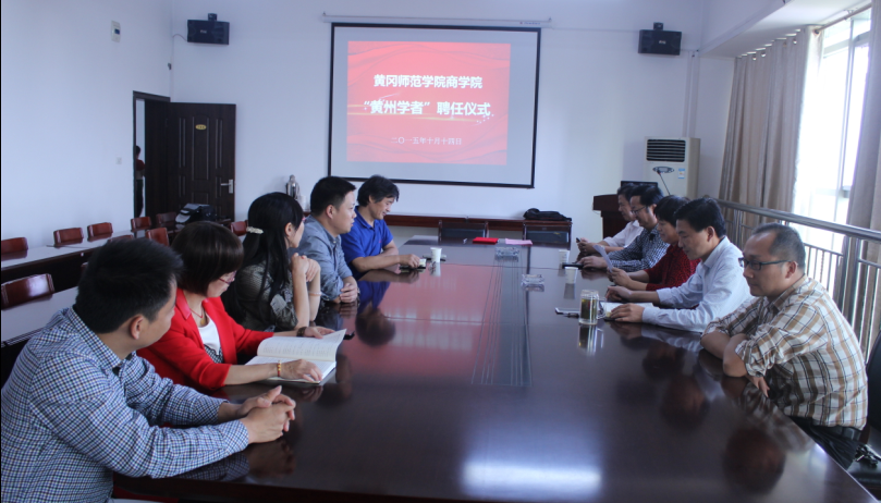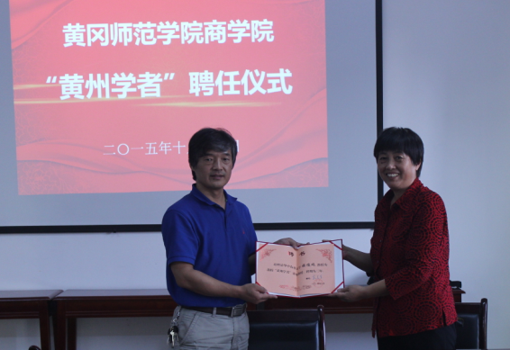 2015年10月14日,我校“黄州学者”计划聘任仪式在资源а√天堂中文中文在线会议室举行,华中农业大学经济管理学院张俊飚教授受聘为我校 “黄州学者”讲座教授。副校长王芹出席聘任仪式,人事处处长高少初及资源а√天堂中文中文在线班子成员参加聘任仪式。高少初代表学校与张俊飚教授签订了聘任合同,王芹为张俊飚教授颁发了聘书。