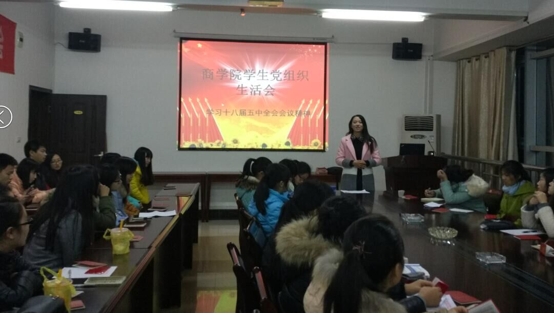 12月29日晚上7:00我院学生党支部在科技楼704召开了主题为“对十八届五中全会文件精神解读”的党组织生活会,我院所有学生党员参加学习。