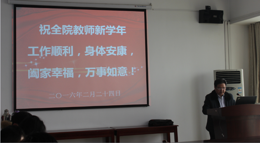 最后,总支书记李月华教授作总结发言。李书记指出,教学是饭碗,科研是发展,全体教师要以教学为中心,以科研为重点,以转型发展为抓手,以提高教学质量为目标,抓好招生就业、教科研平台建设、学生安全稳定等工作,使我院2016年工作有创新、有特色、有亮点、有增量,再创辉煌。