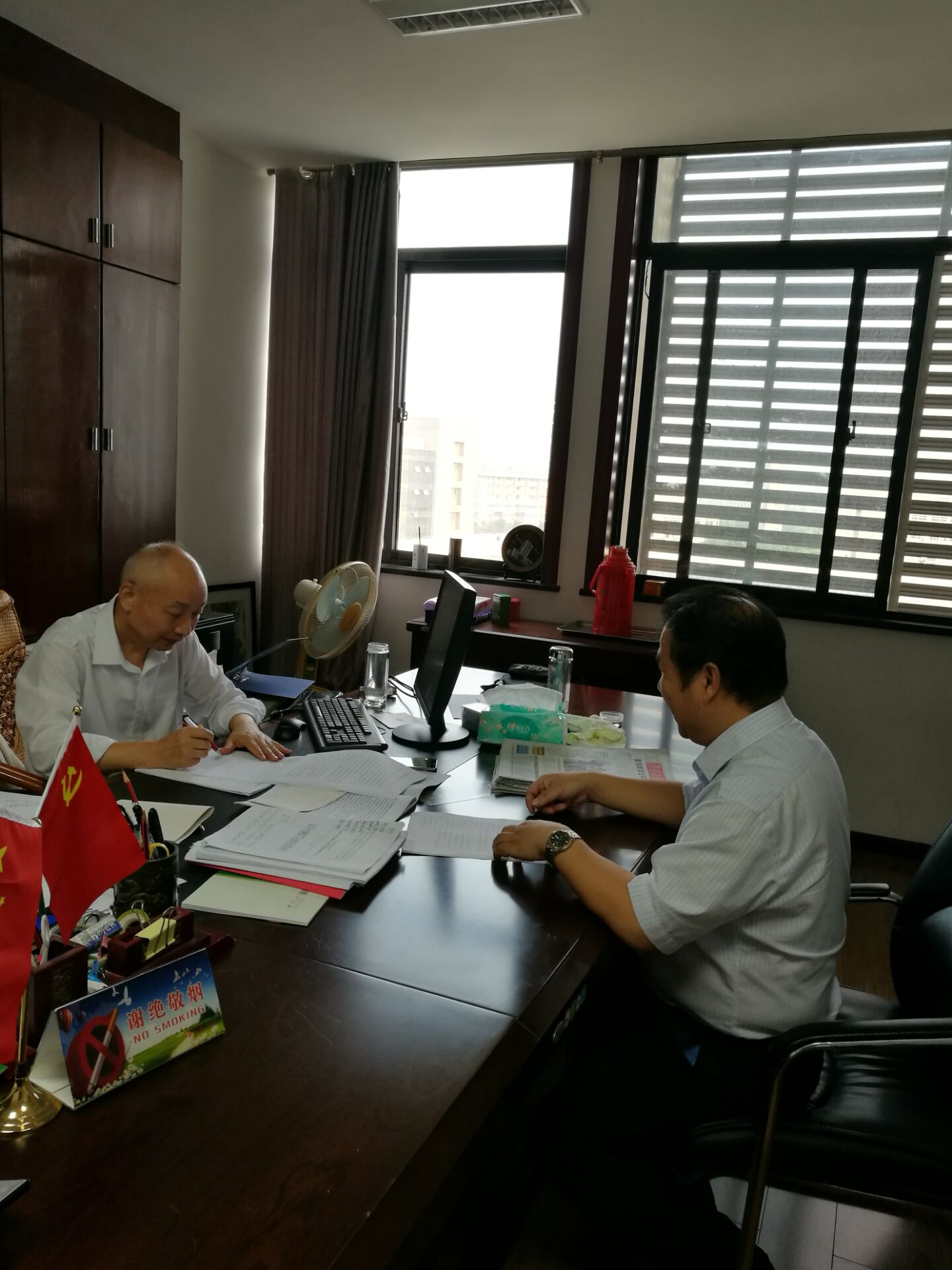 2016年7月2日,我院党总支书记李月华去多功能楼702向分管我院工作的副校长刘焕斌汇报工作。