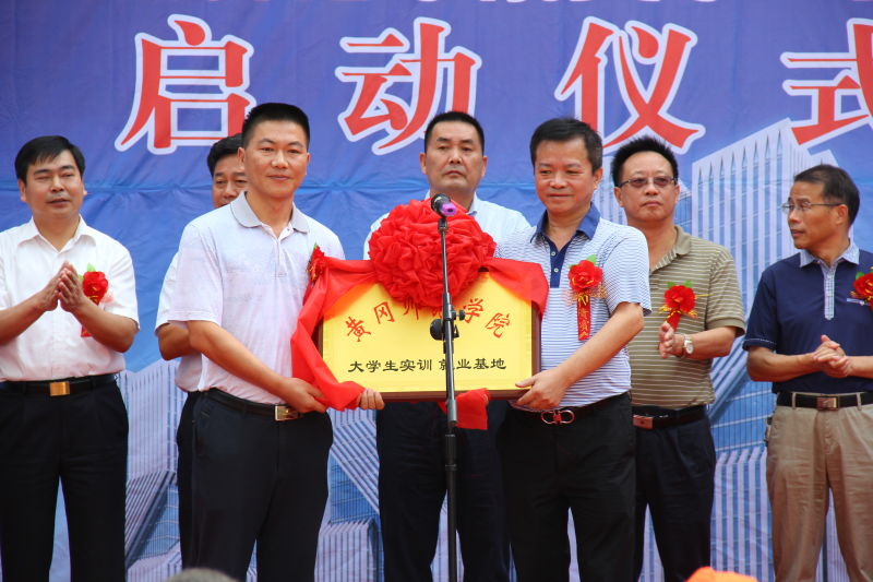 刘汉成代表学校将我院大学生实训就业基地的牌匾授予了湖北众磊置业有限公司董事长王志农,这将标志着我院大学生实训就业基地正式落户阿里巴巴武穴产业带电商城。