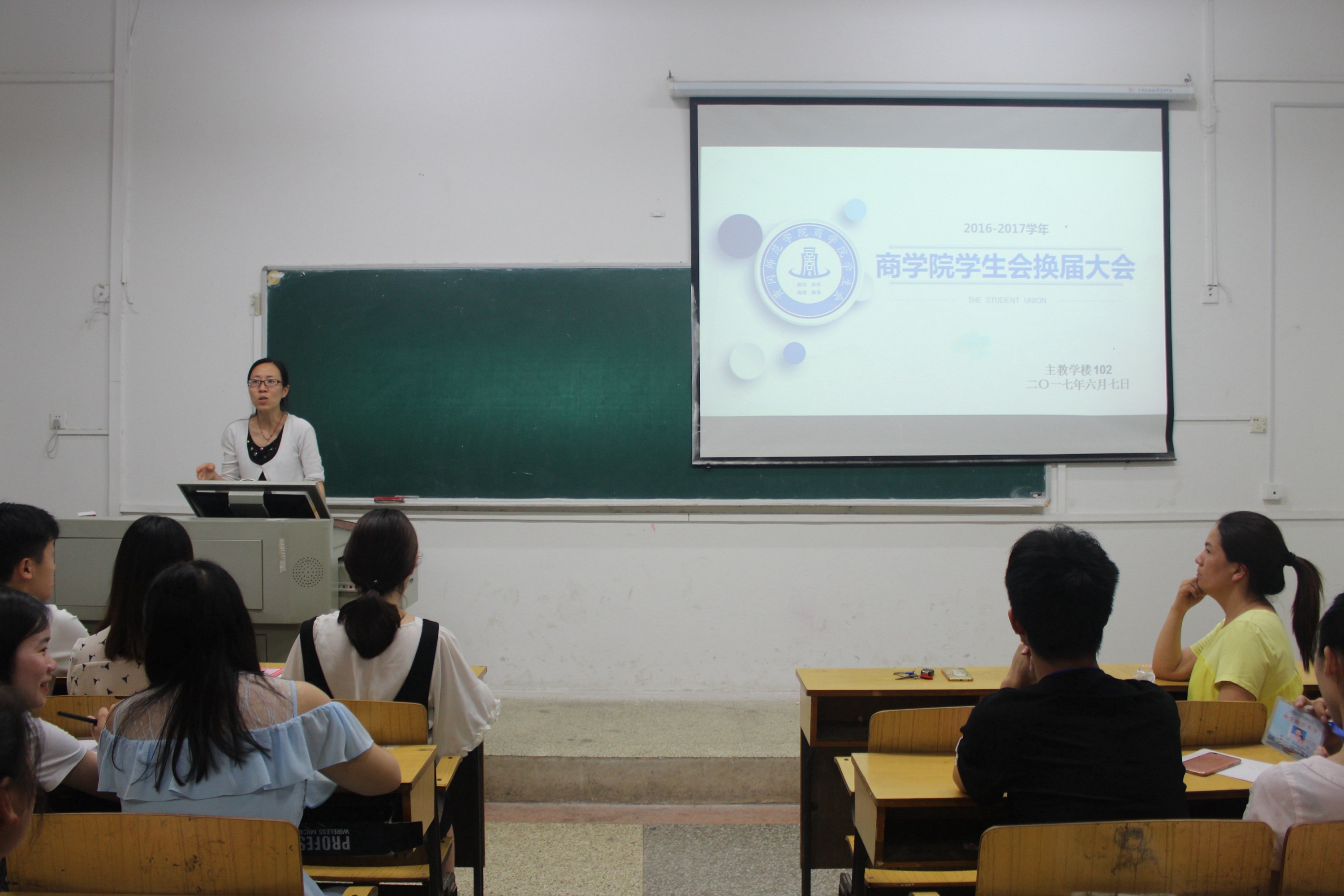 6月7日晚19:00,我院2017年学生会换届大会在南区主教102举行。资源а√天堂中文中文在线党总支副书记余晚霞,辅导员张丽、张苏明,全体学生会成员以及我院辩论队、主持队、舞蹈队、学生党支部等成员参会,团总支副书记刘兢�主持本次大会。