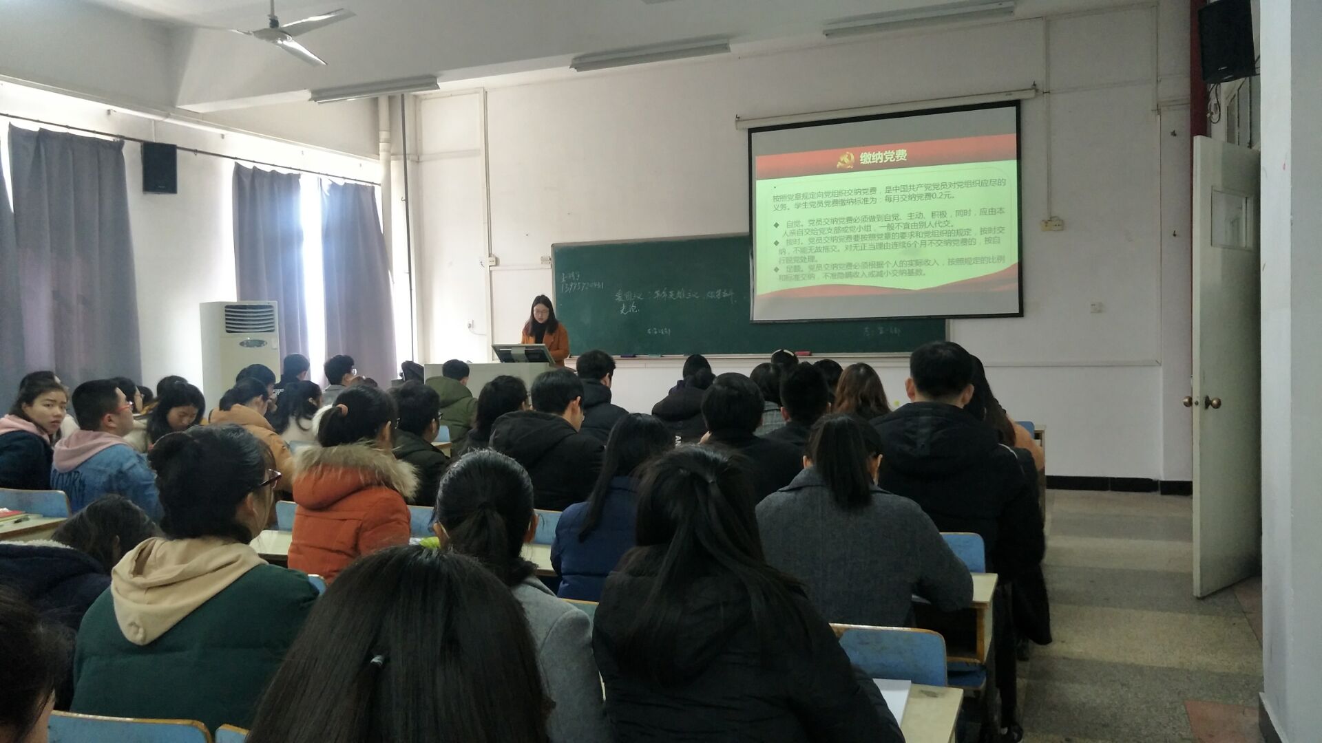 2018年3月9日中午12时,根据校党委组织部的统一部署和资源а√天堂中文中文在线党总支的要求,资源а√天堂中文中文在线学生党支部书记席桢、程惠以及54名在校学生党员在博学楼104教室开展了2-3月支部主题党日活动。