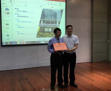 院长刘汉成教授为姚远总经理颁发客座教授聘书。