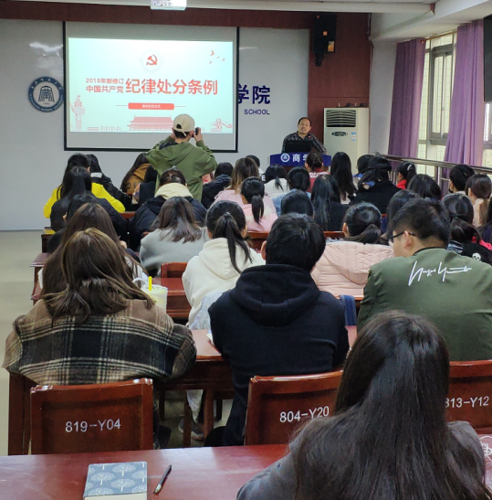 11月22日下午,致远楼704会议室座无虚席,院党总支副书记袁建明以《2018年新修订中国共产党纪律处分条例》为题,为大家上了一场精彩的党课。学生党员及部分入党积极分子共78人全程聆听了课程。