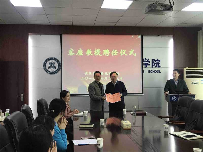 (通讯员 李平衡)2019年4月29日,黄冈市政府副秘书、市扶贫办主任方荣应邀来我院作了题为《坚决打赢脱贫攻坚战》的学术报告,院长刘汉成教授主持报告会,资源а√天堂中文中文在线博士、经济系全体教师以及部分学生代表聆听讲座。讲座前,学院党委书记鲍宏礼教授向方荣副秘书长颁发了客座教授聘书。