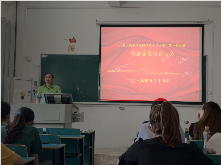 近日,我院学生各支部在博学楼115、116、117教室召开了2019年上半年预备党员转正大会。院党委袁建明副书记、组织员阙庆喜老师、学生各党支部书记及学生党员等近百人参加了大会。