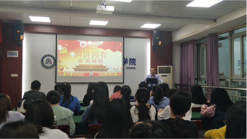 5月29日晚19:00,为严格党的“三会一课”组织生活制度,贯彻落实《黄冈师范学院第二十个党风廉政建设建设宣传月活动实施方案》,在致远楼701、704、712、719会议室,我院学生各党支部书记同上一堂党课,主题为“践行‘四讲四有’,争做合格党员”。本次党课由我院学生各党支部书记主讲,各支部党员与入党积极分子参加学习。