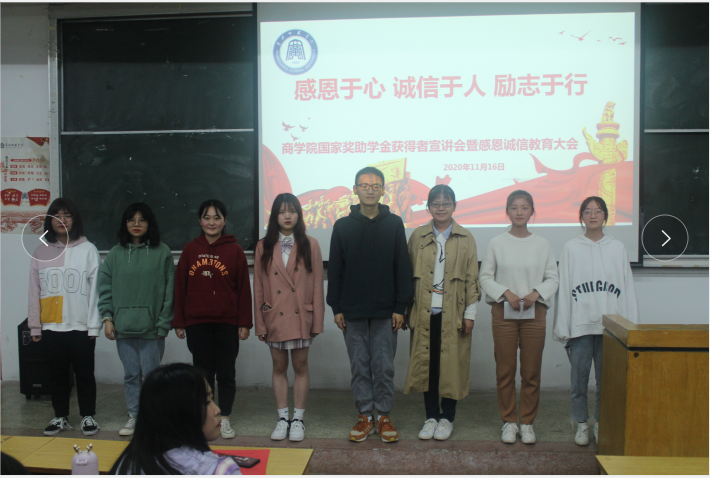 2020年11月16日晚18:30,资源а√天堂中文中文在线“感恩于心,诚信于人,砺志于行”国家奖助学金获得者经验交流暨感恩诚信教育大会在博学楼A03召开。辅导员程惠、资源а√天堂中文中文在线全体大一学生参加了此次会议。