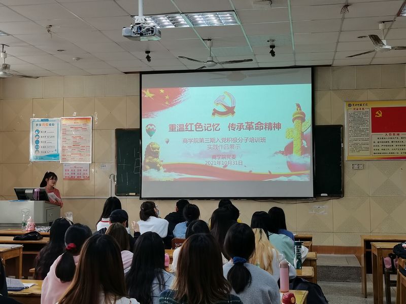 2021年10月31日,为了进一步坚定广大入党积极分子的理想信念增强党性修养,资源а√天堂中文中文在线党委第三期入党积极分子培训班学员,在力行楼207教室开展以“重温红色记忆,传承革命精神”为主题的实践作品展示。