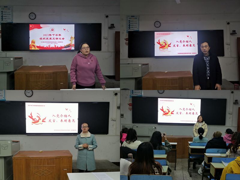 2021年12月9日晚上19:00,资源а√天堂中文中文在线学生各党支部分别在力行楼301教室、302教室、303教室、304教室召开接收预备党员大会,讨论接收季灿灿等25名发展对象成为预备党员的议题。发展对象第一介绍人及资源а√天堂中文中文在线学生各党支部全体成员参加了会议。