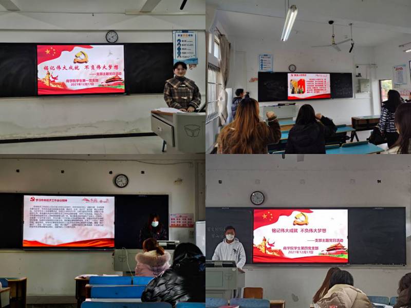 2021年12月17日下午,资源а√天堂中文中文在线学生党支部分别在北区力行楼102,202,204,302教室举办12月份支部主题党日活动。本次活动的主题是“铭记伟大成就,不负伟大梦想”,本次会议由资源а√天堂中文中文在线各支部副书记主持,资源а√天堂中文中文在线学生党支部全体党员参加了此次会议。
