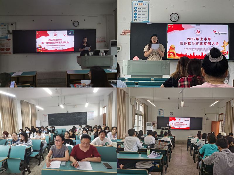 2022年05月27日下午,资源а√天堂中文中文在线学生各党支部分别于力行楼201教室、力行楼202教室、力行楼203教室、力行楼204教室召开预备党员转正支部大会,部分不能到场的入党介绍人及学生党员于腾讯会议参会。大会由学生各党支部书记主持,各支部全体党员参会。