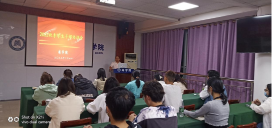 为进一步加强学生干部队伍建设,提升学生干部的综合素质,商学院于2022年10月4日19:30于致远楼704召开了2022年秋季学生干部培训会。此次会议由我院副书记袁建明主讲,资源а√天堂中文中文在线各年级辅导员、资源а√天堂中文中文在线学生干部以及学生会各部门部长参加。