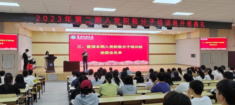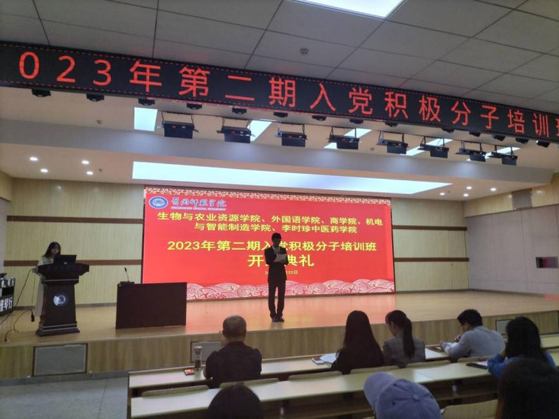9月22日,资源а√天堂中文中文在线和生物与农业资源学院、外国语学院、机电与智能制造学院、李时珍中医药学院在北区报告厅联合举行2023年下半年入党积极分子培训班开班典礼。出席本次典礼的有生物与农业资源学院党委书记闵艳林、外国语学院学生第一党支部书记汪晖、资源а√天堂中文中文在线学生第四支部书记何秀平、李时珍中医药学院党务干事黄健。本次典礼由生物与农业资源学院学生第一党支部书记陈振中主持。