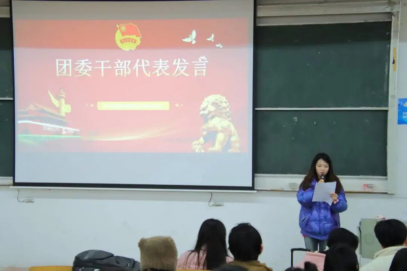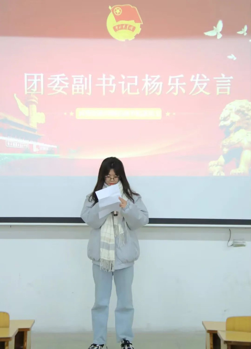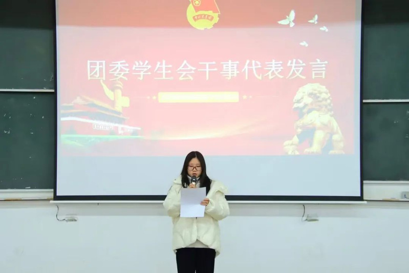 大会第六项,团委副书记杨乐进行总结发言。她在讲话中提到,全体学生会干事要总结过去、把握规律、坚定信心、走向未来,要不断锻炼自身学习、工作能力,鼓励我们在生活中要充满积极向上的活力与动力。