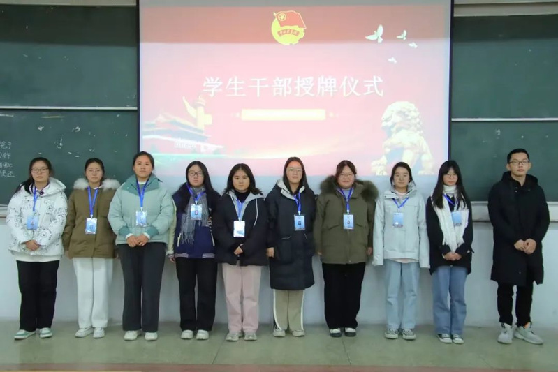 大会第四项,秘书长庞林峰宣读了2023-2024届学生会干部名单,并举行了授牌仪式,各学生干事以部门为单位依次上台领取工作牌,彼此之间留下了较为深刻的印象,利于后续学生会工作的开展。