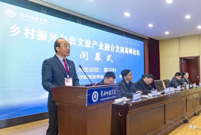 闭幕式由湖北应急管理职业技术学院校长邹功平教授主持,湖北工程学院经管学院院长张辉教授、皖西学院环旅学院刘乾坤博士、安庆师范大学经济与管理学院副院长徐俊杰教授、黄冈师范学院地理与旅游学院陈丽军教授分别进行了点评发言。夏庆利作大会总结,他指出本次高峰论坛通过广泛讨论,交流了思想,升华了认知,增进了友谊,并呈现出5大特点,一是主题报告紧扣乡村振兴的时代命题,接天线;二是研究内容紧扣大别山农文旅融合发展主题,接地气;三是参会代表覆盖大别山各地区高校及相关职能部门,显人气;四是论坛突出学术性、实践性和实证性相结合,有创新;五是论坛凸显绿色发展理念,可持续。最后他希望本次论坛能成为大别山地区农文旅产业融合促进乡村振兴的高水平学术交流平台,不断发展与壮大。