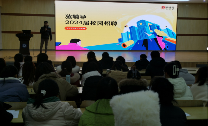 第四阶段是企业代表作实习就业宣讲。猿辅导北京HRBP负责人张悦宁从企业成长历程、企业文化、岗位要求、薪酬福利、晋升通道等方面做了宣讲。
