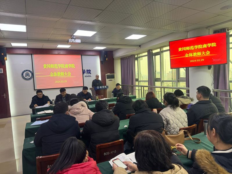 2024年2月29日,商学院在致远楼704召开2024年春季学期教职工大会。会议由学院党委书记刘汉成主持,全院教职工参加了会议。