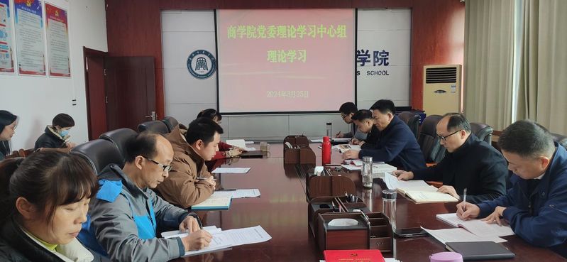 3月25日下午,商学院召开党委理论学习中心组理论学习(扩大)会议,学院党委委员、各党支部书记、各教研室主任、学生事务办公室主任参加。会议由学院党委书记刘汉成主持。