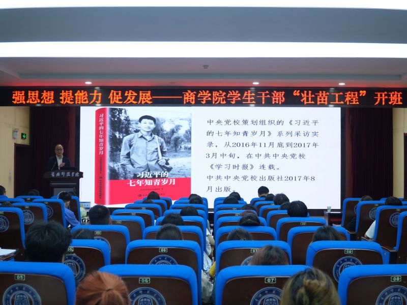 院长王庆报告的题目是《追寻伟人足迹 汲取前进动力——习近平七年知青岁月有感》。他从习近平七年知青生活的成长经历、七年知青生活对习近平的影响和习近平知青生活给我们的启示三个方面与学生干部进行了深入交流,让大家对习近平七年知青生活有了深入了解,学生干部深受启发。