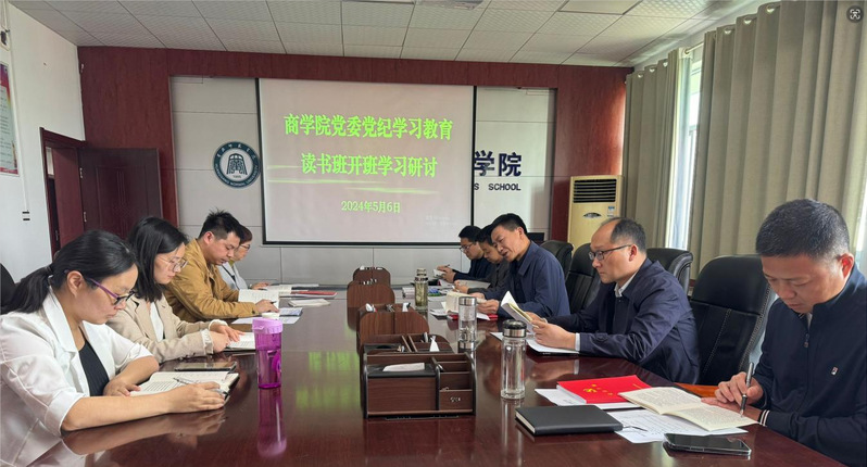 为更好落实党纪学习教育实施方案,确保学习教育走深走实,5月6日上午,资源а√天堂中文中文在线党委在致远楼719会议室举行党纪学习教育读书班集中学习暨研讨交流会。全体班子成员以及支部书记参加会议。