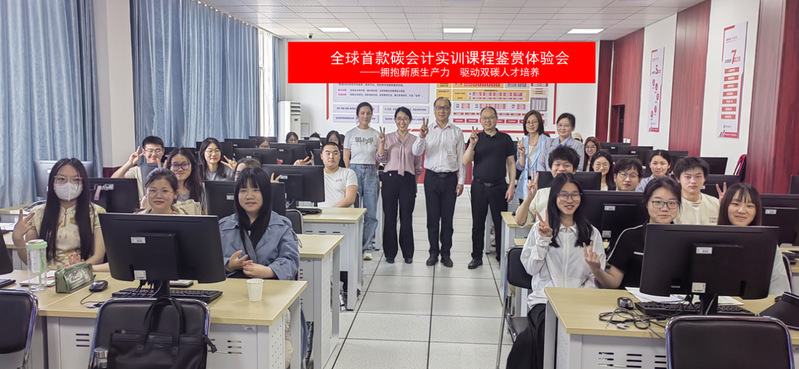 为了积极落实国家的绿色转型发展和“碳达峰碳中和”战略目标、推动碳普惠教育、发展会计+碳专业人才培养,2024年 5月9日在资源а√天堂中文中文在线经济管理实验实训中心307举行了一次碳会计公开课鉴赏体验会,请到北京知链科技有限公司的专家讲课,院长王庆出席会议并致辞,会计系夏晓燕老师主持会议,会计系曹慧老师、彭燕老师和会计专业2201班全体学生参与鉴赏体验。