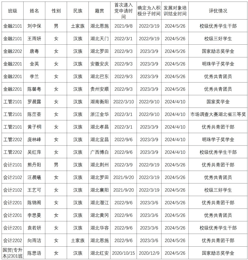 根据发展党员工作有关规定,刘中保等19名同志政审、预审合格,经上级党委同意,于20240603日召开支部大会讨论拟接收为中共预备党员。现将其有关情况公示如下: