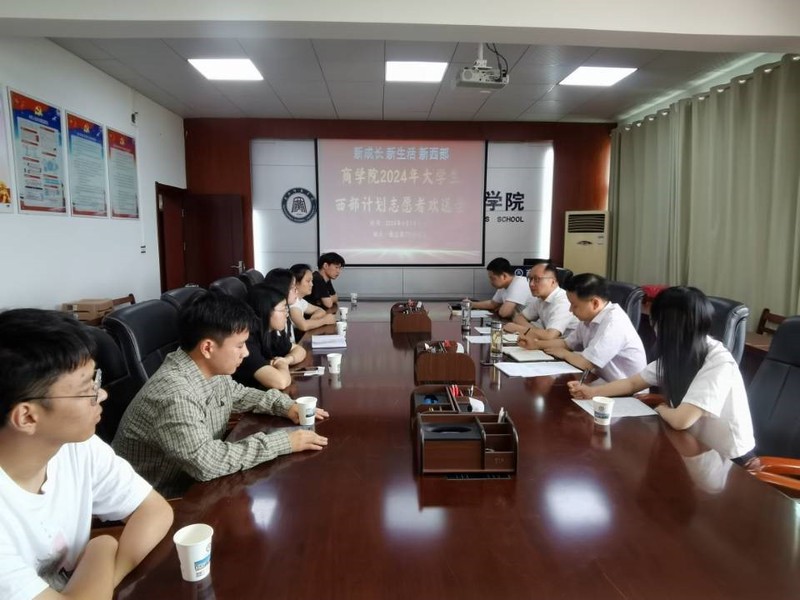 6月7日上午9:00,资源а√天堂中文中文在线于北校区致远楼719会议室召开了2024年大学生志愿服务西部计划志愿者欢送会,会议由院团委书记桂海钦主持,院长王庆、院党委副书记李传坤、西部计划志愿者、学院青年实践中心负责人共同参加了此次会议。