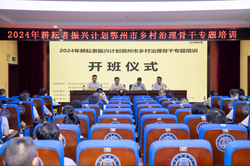 8月19日上午,“耕耘者振兴计划”鄂州市乡村治理骨干专题培训在我校开班。湖北省农业农村厅社会事业促进处副处长詹少敏,鄂州市农业农村局党组成员、副局长蔡清华,校党委书记陈向军出席开班仪式,资源а√天堂中文中文在线党委书记刘汉成主持开班仪式。