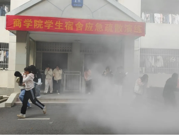本次演练通过烟雾弹模拟火灾环境,让同学们亲身感受火灾场景。随着哨声和喇叭预警声响起,在浓烟四起中开始。面对突发警报、浓烟滚滚,同学们也没有惊慌失措。而是有条不紊地用湿毛巾捂着鼻子、弓着身子一次离开寝室,排成一列纵队,在老师指挥下按照指定逃生路线迅速从宿舍撤离到了安全的空旷场地。全体同学沉着冷静、互相合作,一切行动听指挥,在演练过程中做到了不慌乱、不拥挤。