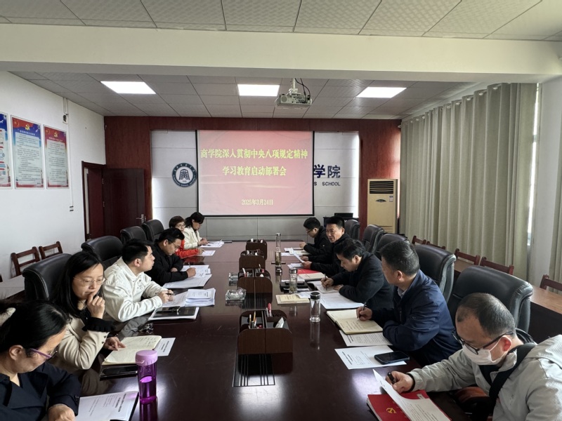 3月24日,我院启动深入贯彻中央八项规定精神学习教育启动部署会暨读书班开班,全体班子成员及基层党支部书记参加会议。商学院党委书记刘汉成主持会议。